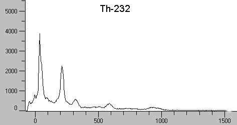 Ähnlich wie beim Radium-Spektrum ist auch hier der "Fingerabdruck" einiger Zerfallsprodukte von Thorium zu sehen, soweit die